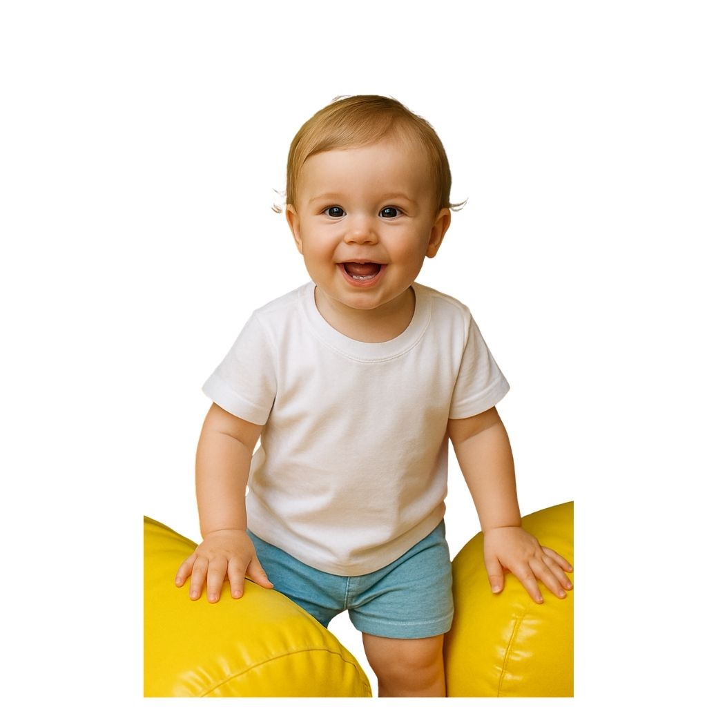 A Camiseta Branca Bebê Lisa é confeccionada em malha 100% algodão, proporcionando um toque macio e respirável — ideal para a pele delicada dos bebês.