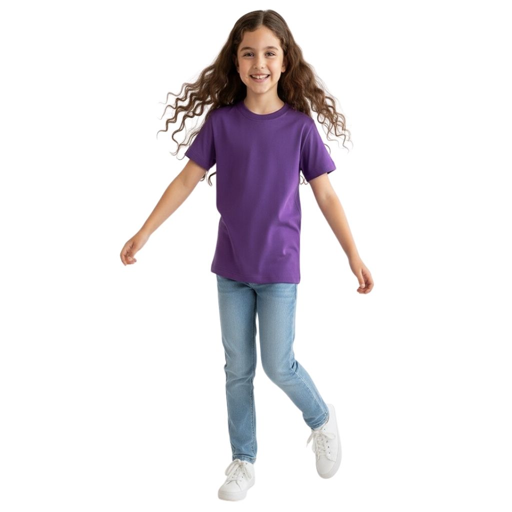 Destaque o visual dos pequenos com a Camiseta Roxa Infantil Unissex, perfeita para quem adora cores vivas e muita atitude! Confeccionada em 100% algodão de qualidade, essa peça proporciona conforto extremo, toque macio e excelente respirabilidade, ideal para o dia a dia, passeios e momentos de pura diversão.