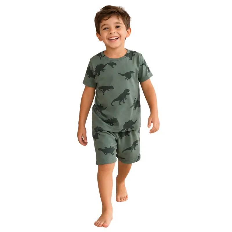 Transforme a hora de dormir em um momento mágico e cheio de imaginação! Este pijama infantil com estampa de dinossauros é perfeito para os pequenos aventureiros que adoram explorar até nos sonhos 💤✨