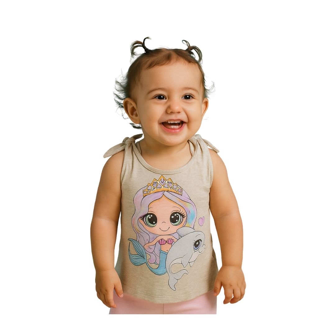 Deixe o look da sua pequena ainda mais encantador com a Regata Infantil Sereia Mescla!