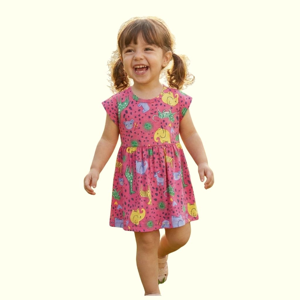 Transforme os momentos da sua pequena em puro encanto com o Vestido Infantil Bebê Animal Print, a escolha perfeita para quem busca estilo, conforto e muita fofura no look do dia a dia!